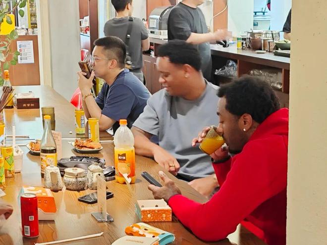 沃尔 走进一家炸鸡店品尝美食,在点单的间隙,还为球迷签名并合影留念。“看沃尔打球的时候我还在上学!那时候我真的很喜欢看他的比赛,我也最喜欢火箭队。没想到今天能和偶像在同一家店吃炸鸡!”一位球迷朋友开心地说。