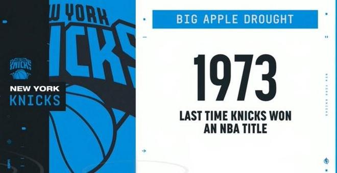 据统计,这是纽约尼克斯队自1973年最后一次夺得NBA总冠军以来,时隔53年再度夺得NBA冠军奖项。尽管不是NBA总冠军,但仍在一定程度上打破了球队的冠军荒。