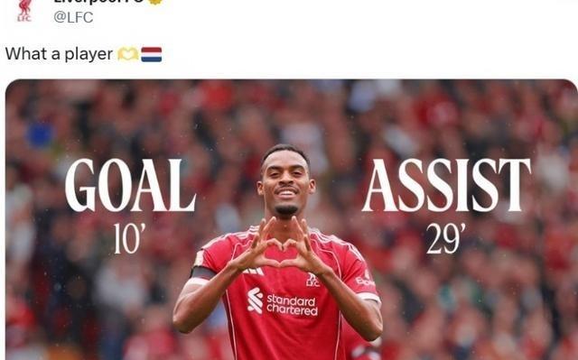 前30分钟传射建功,利物浦官推晒赫拉芬贝赫海报:多棒的球员!