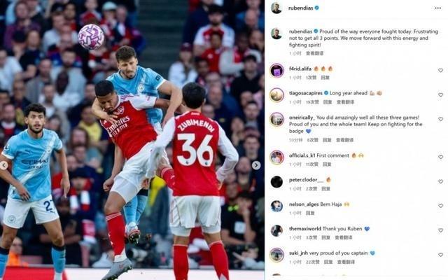 鲁本迪亚斯社媒:对没能拿到3分非常失望,但为球队今天表现骄傲