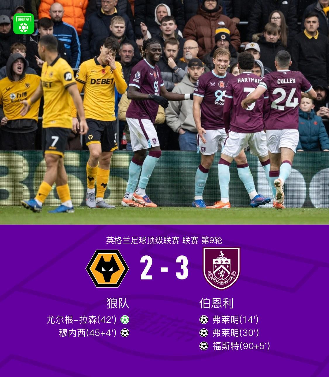 英超狼队23不敌伯恩利仍难求一胜福斯特读秒绝杀弗勒明双响