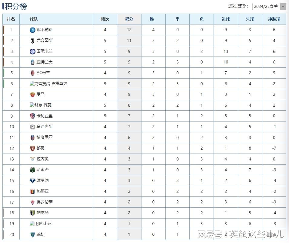意甲最新积分榜:国米2球完胜攀升第3,尤文战平劲敌仍居第2!