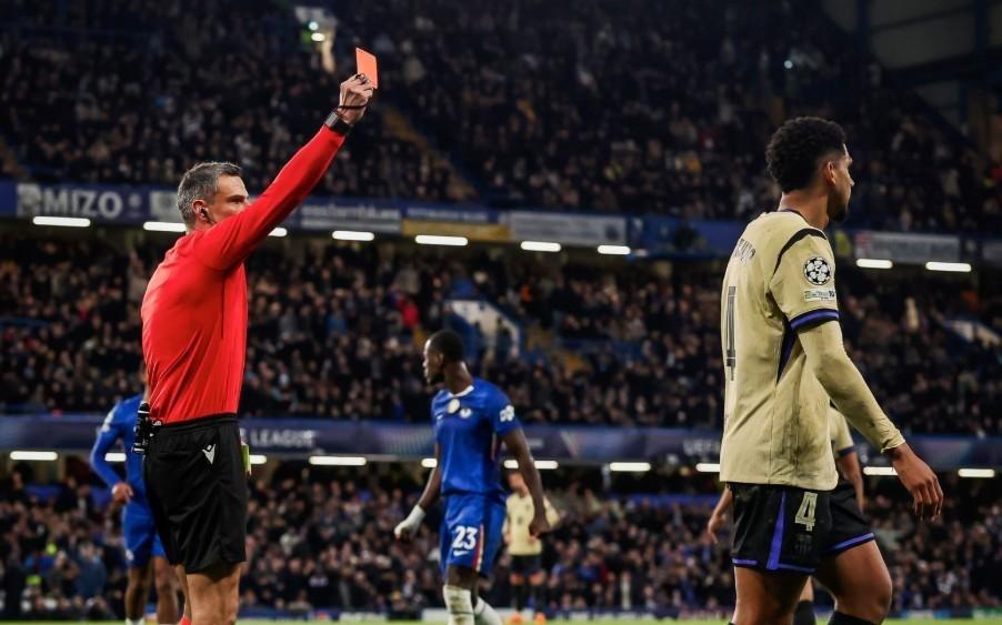 巴萨第六次欧冠单场上半时染红,阿劳霍两度上榜