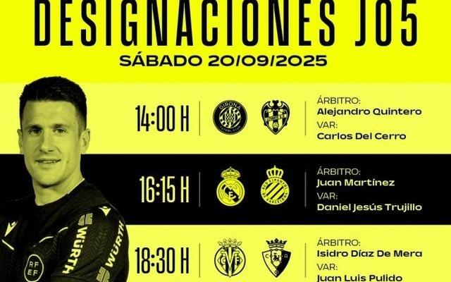 西甲第5轮部分比赛裁判安排:胡安马丁内斯执法皇马vs西班牙人