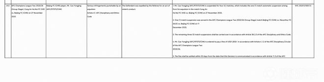 而不出意外,曹永竞也很快收到了亚足联的罚单。4场停赛中的1场,已经在北京国安对阵麦克阿瑟的亚冠二级联赛末轮比赛中执行。