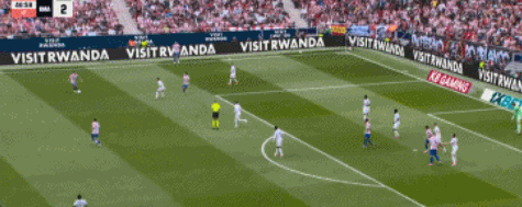 第43分钟,阿尔瓦雷斯开出角球,朗格莱用手部将球挡进球门,进球无效,随后半场补时阶段,科克助攻索尔洛特头球破门,帮助马竞2-2扳平。