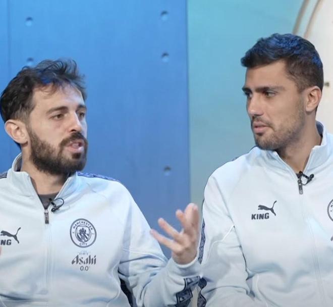 本赛季,曼城将与皇马再次在欧冠联赛中交锋。近日,在接受Telemundo采访时,伯纳多-席尔瓦和罗德里被问及他们在欧冠中最难对付的对手时,两人均表示是皇马。