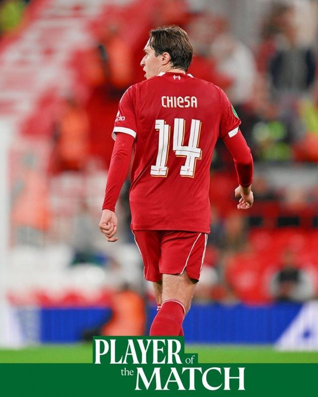 此役基耶萨首发出战,送出2记助攻,帮助利物浦取胜,他当选本场比赛利物浦队内最佳球员。