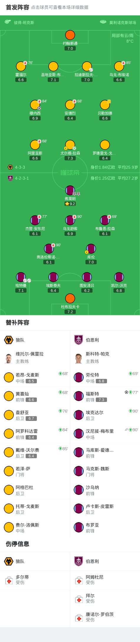 北京时间10月26日英格兰足球顶级联赛 联赛 第9轮,狼队主场对阵伯恩利。狼队尤尔根-拉森破门,穆内西破门。伯恩利弗莱明梅开二度,福斯特破门。最终比分狼队 2-3 伯恩利。