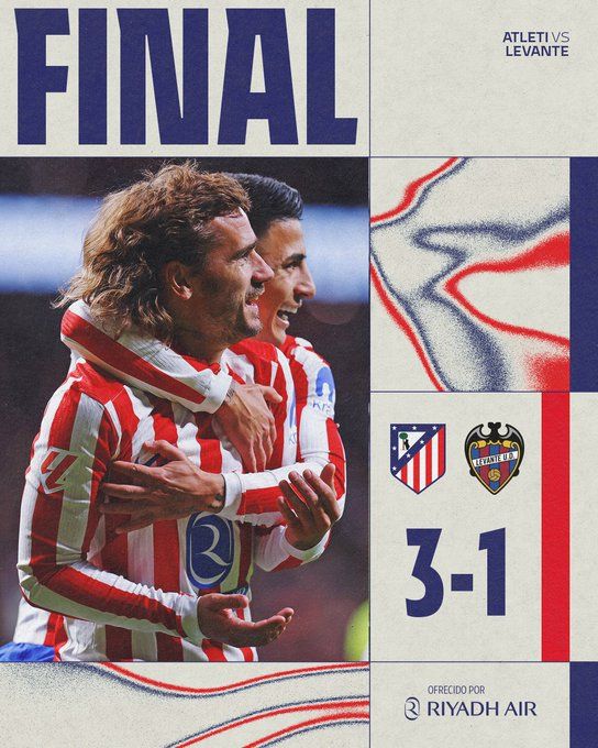 北京时间11月9日01:30,西甲联赛第12轮,马德里竞技主场迎战莱万特。上半场巴里奥斯传中造乌龙,马竞防守漏人致丢球,下半场格列兹曼替补梅开二度。最终马竞主场3-1战胜莱万特,马竞取得联赛4连胜+11轮不败,先赛距榜首皇马5分。